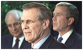 "Bush, himself the most intellectually backward American president of my political lifetime, is surrounded by advisers whose bellicosity is exceeded only by their political, military and diplomatic illiteracy. Pity the man who relies on Rumsfeld, Cheney and Rice for counsel." (Gerald Kaufman, Spectator 17-8-2002)